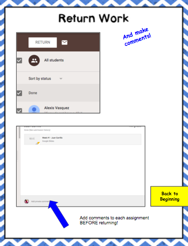 Now, the BEST part of using Classroom, is the EASE of grading! No more heavy bags and rolling carts full of papers and notebooks to take home to grade…Everything is in your Google Drive and ready to grade!