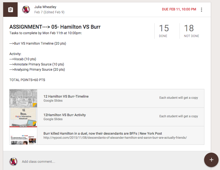 Now, for the GOOD stuff! Are you trying to go PAPERLESS in your class! When you create Assignments in Classroom, that’s exactly what you can do! Here is how you add an Assignment:
