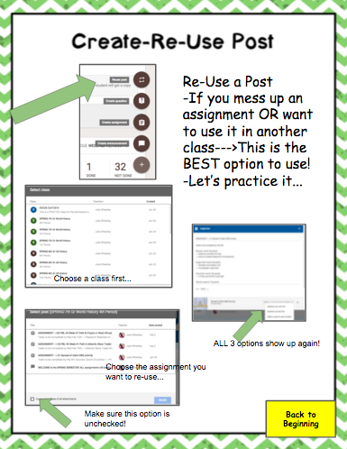 IF you make a mistake when posting, no worries! Google Classroom has a FANTASTIC feature, Re-Use Post, that allows you to do just that!